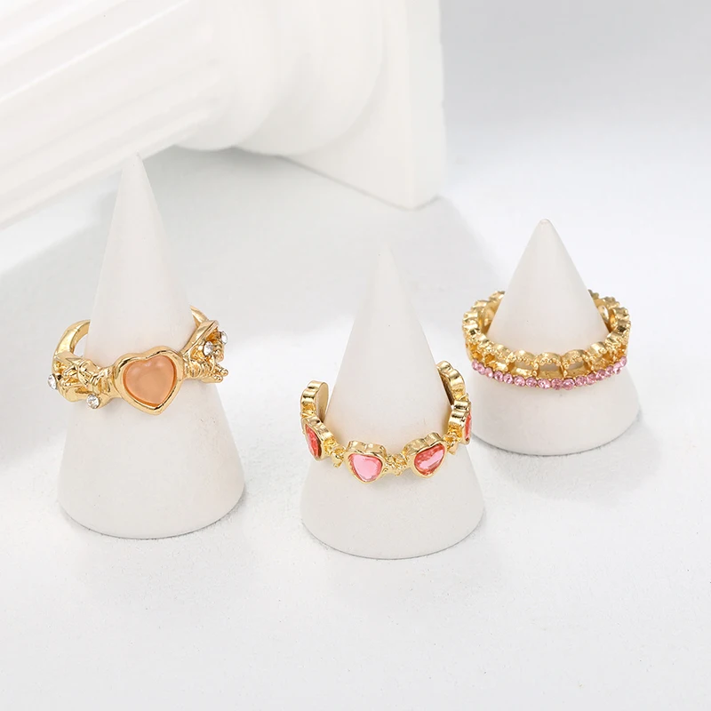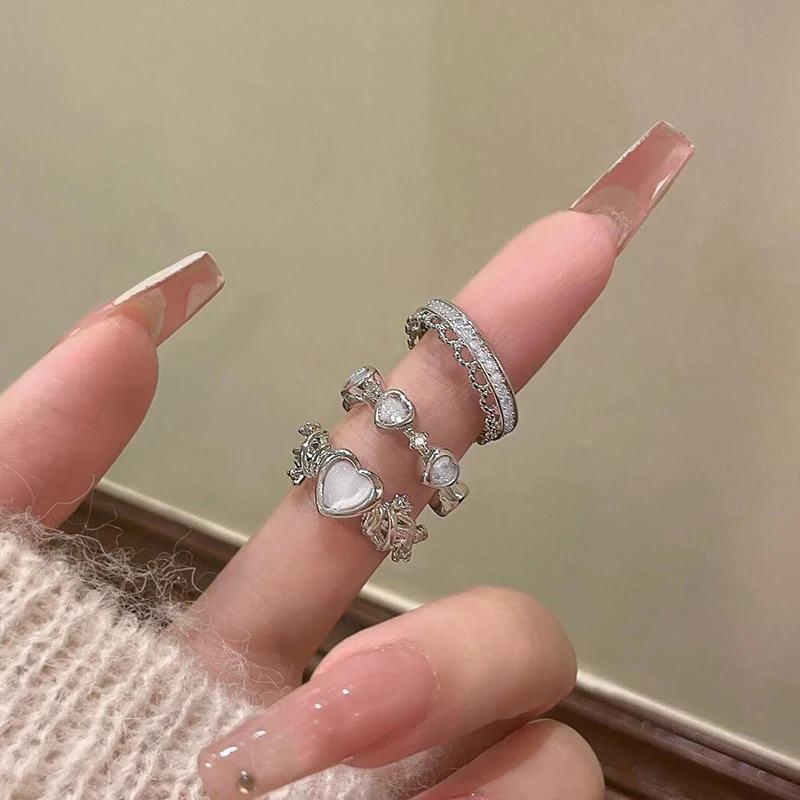 The heart motif brings a touch of charm and sweetness, while the layered design gives the illusion of a complete, coordinated set. Whether worn as a bridal accessory or a stylish everyday piece, this ring set delivers a glamorous touch with a modern twist.